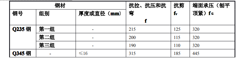 Q235鋼材的強(qiáng)度設(shè)計(jì)值和焊縫的強(qiáng)度設(shè)計(jì)值
