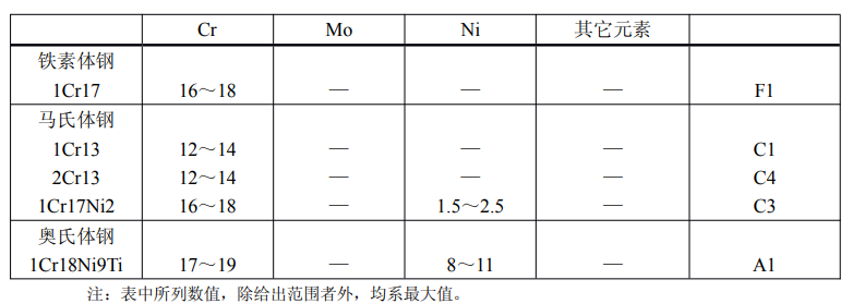 C.1 本附錄給出了可用于緊固件的不銹鋼材料牌號及化學成分,供設計和生產中參考。
