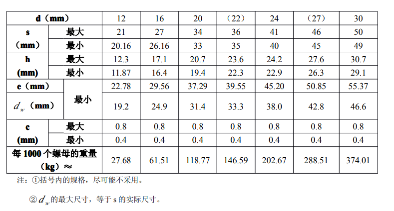 鋼結(jié)構(gòu)用高強度大六角螺母的規(guī)格、尺寸及重量